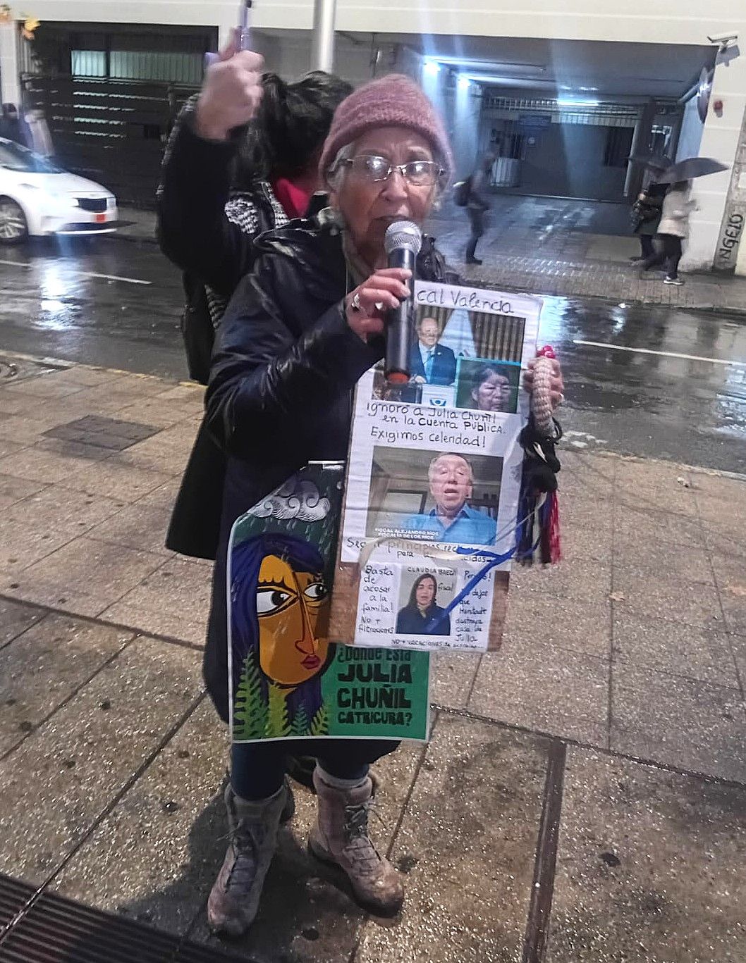 A pesar de una persistente lluvia, ayer jueves por la tarde distintas organizaciones sociales agrupadas en el Espacio Día a día por Julia Chuñil se manifestaron ante las sedes de cuatro poderes del Estado chileno por su silencio a 6 meses de la desaparición de esta comunera y activista Mapuche desde la comuna de Máfil, en el sur del país. Hasta entonces, Julia -de 72 años- se desempeñaba como presidenta de la Comunidad Putreguel y estaba habitando un terreno de 900 hectáreas de bosque nativo, al cuidado de especies sagradas para el pueblo mapuche. También los medios de comunicación masivos han silenciado este caso. Precisamente por eso quisimos ser parte de esta conovocatoria, como medio alternativo y comunitario.